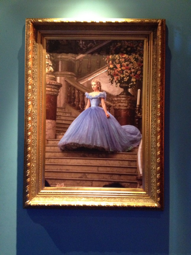 Interspersed throughout are a lot of design boards, and pictures from the film. I spent most of my time in the main ballroom, just looking up close at all the details Sandy Powell put into her designs. My favourite are Anastasia and Drisella’s “ugly” ball gowns. Whilst they are interesting colours, the detail into each individual flower is beautiful.