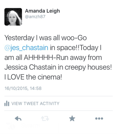 As this tweet I sent after seeing the film yesterday says – I both love and fear Jessica Chastain.