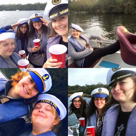 In the morning, we jumped on the train and took them to Hoveton and Wroxham on the Norfolk Broads. When we got off the train I think they had an idea it was boat related, what with the sailors hats we had. They didn’t realise that we had rented an entire little boat to ourselves, to sail about at our leisure!