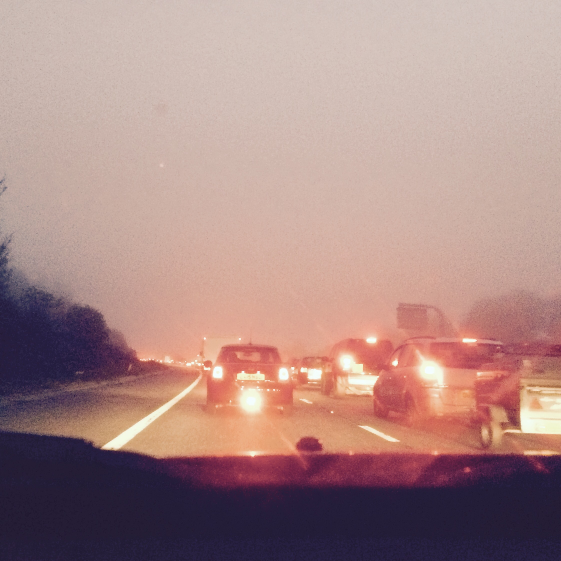 Fog and traffic.