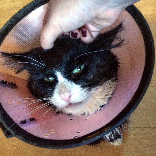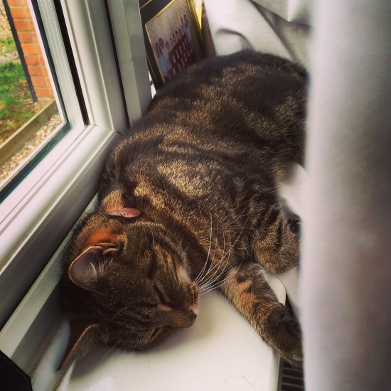 Whilst at mums I got to have some cuddles with this scruffbag who has been through the ringer recently. He has a severe form of some kind of dermatitis and his skin keeps splitting 😦 He’s usually such a beautiful fluffy thing but right now HATES the cone of shame and just wants to go outside.