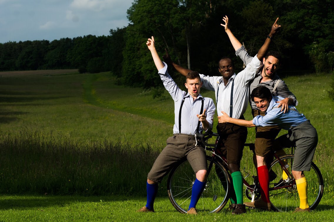 I was lucky enough to catch their production of As You Like It when they were performing in the grounds of Paston College in North Norfolk, quite early on in their current tour. That day they had cycled from Norwich to North Walsham and as I arrived were setting up their stage aka lawn. Having the energy to cycle miles during the day and THEN go on to perform Shakespeare is pretty impressive- and their energy never wavered one bit!
