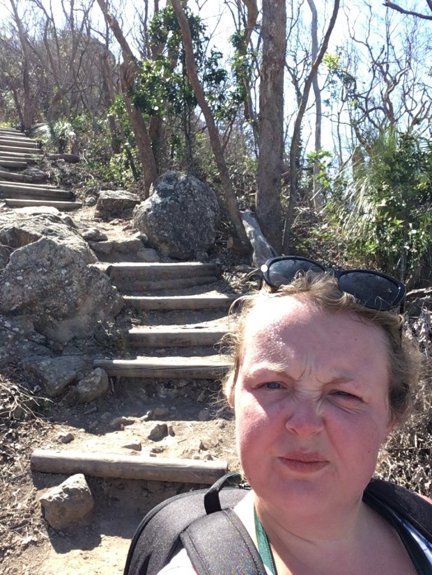 They weren’t well constructed steps, they were roughly made from whatever was lying around and bore traces of damaged from the weather. I stopped for a breather so many times I lost count, but I wasn’t going to give up. And whilst it sounded like the kookaburras were laughing at me I was actually having fun. Sure I was passed by people, but they didn’t look like they were having a much easier time of it than I was, which made me feel better.